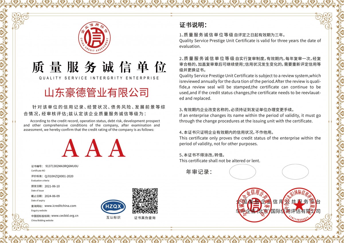 山東豪德管業有限公司豪德——專業pe管材生產廠家公司是聚乙烯PE管材管件生產建設基地,年產各類PE管材近億噸,綜合性能好。